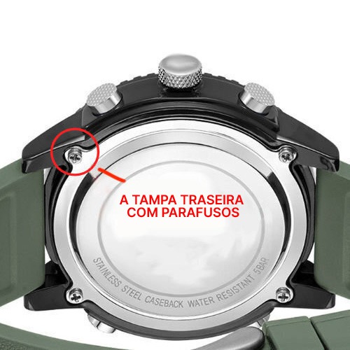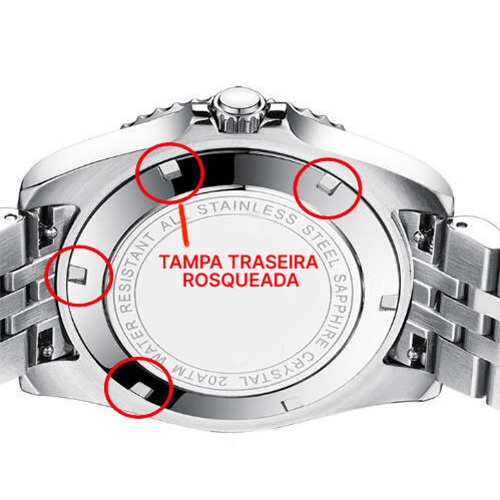 Agora só falta montar o relógio novamente. Recoloque todos os anéis de proteção e juntas exatamente como estavam ao abrir a tampa traseira. Se o seu relógio tiver tampa rosqueada, basta rosqueá-la novamente até que fique bem firme. Certifique-se de que a tampa encaixe corretamente na rosca, para que o relógio fique bem vedado.