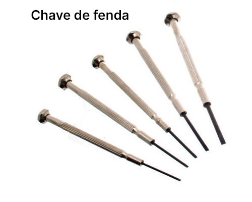 Se o seu relógio tiver pequenos parafusos que precisem ser removidos para abrir a tampa traseira, também encontrará uma pequena chave de fenda incluída no kit. Você pode comprar o nosso kit de ferramentas para reparo de relógios aqui.