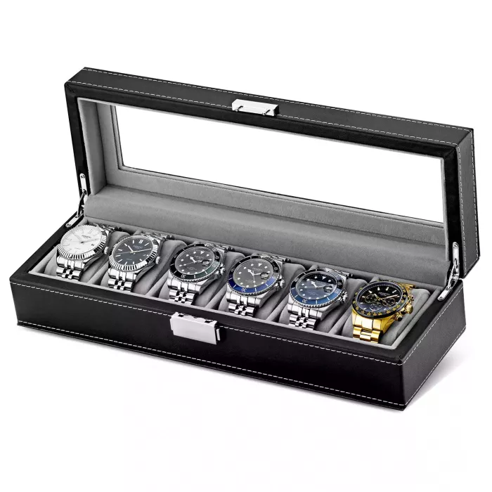 Ditur Caixa para relógios incl. 3 relógios opcionais Preto Couro sintético KXD0943