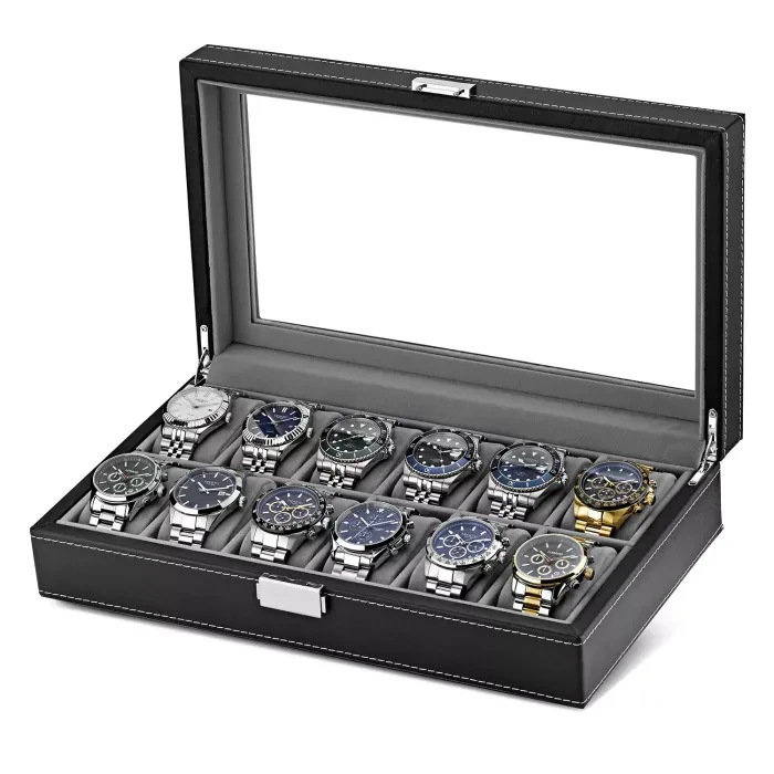 Ditur Caixa para relógios incl. 3 relógios opcionais Preto Couro KXD1016